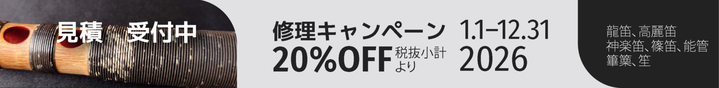 割れた、頭が外れた、振るとカタカタ音がする、音が鳴りにくい、巻き直し、漆の塗り直し、笙の洗い替えなど。手入れに必要な日数は状態によります、まずは気軽にご相談ください。