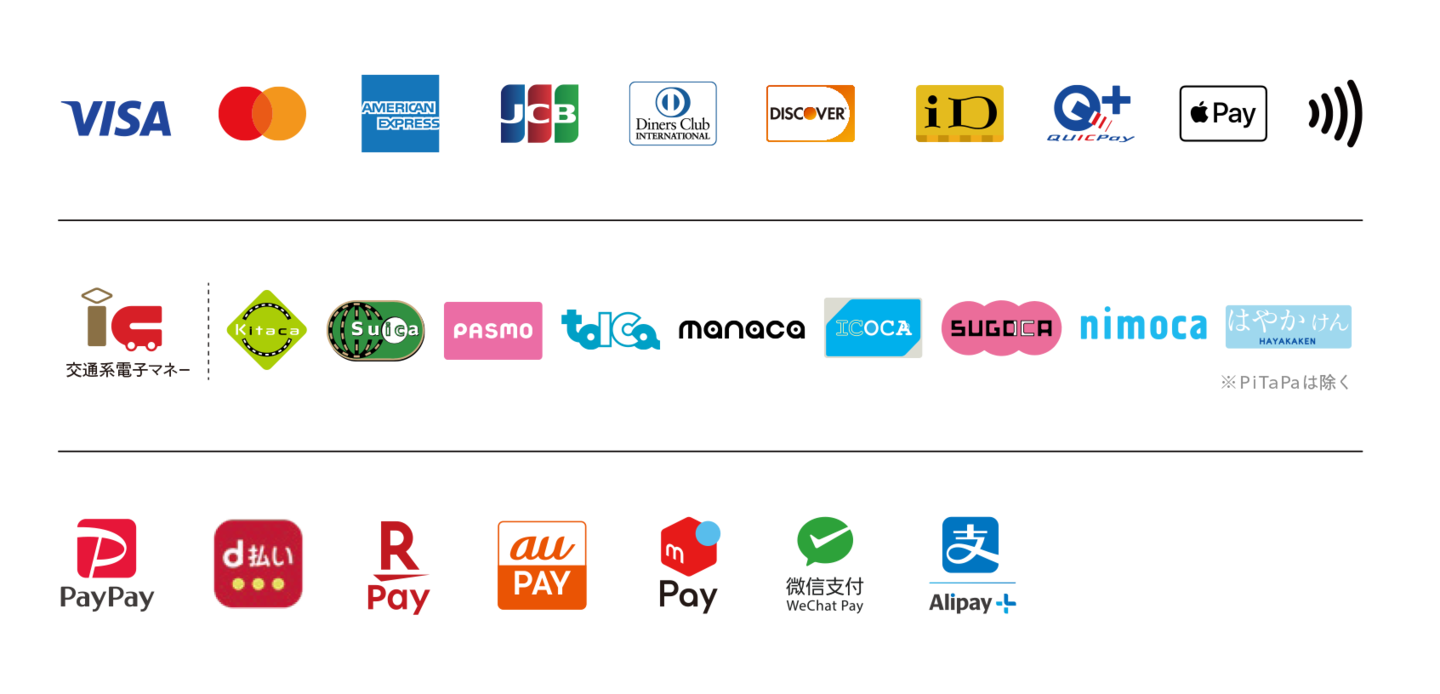 現金、クレジットカード、QRコード、交通系電子マネーなど